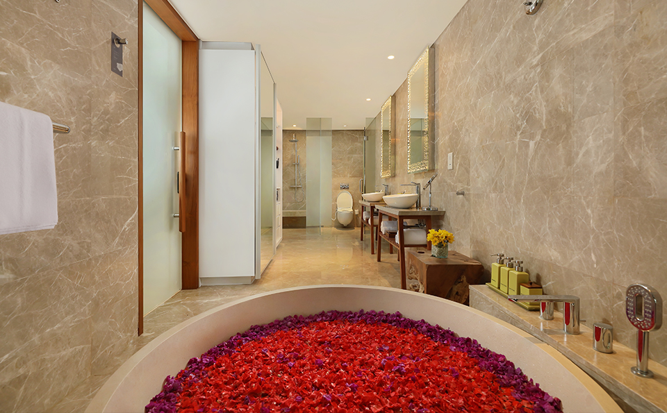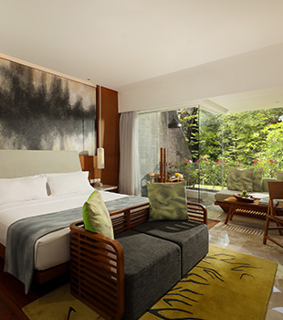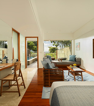 A spacious terrace, king size bed with a vertical garden backdrop and a generous day bed. Plush sun loungers are further maximised for your relaxation as gentle sea breeze caress your skin.