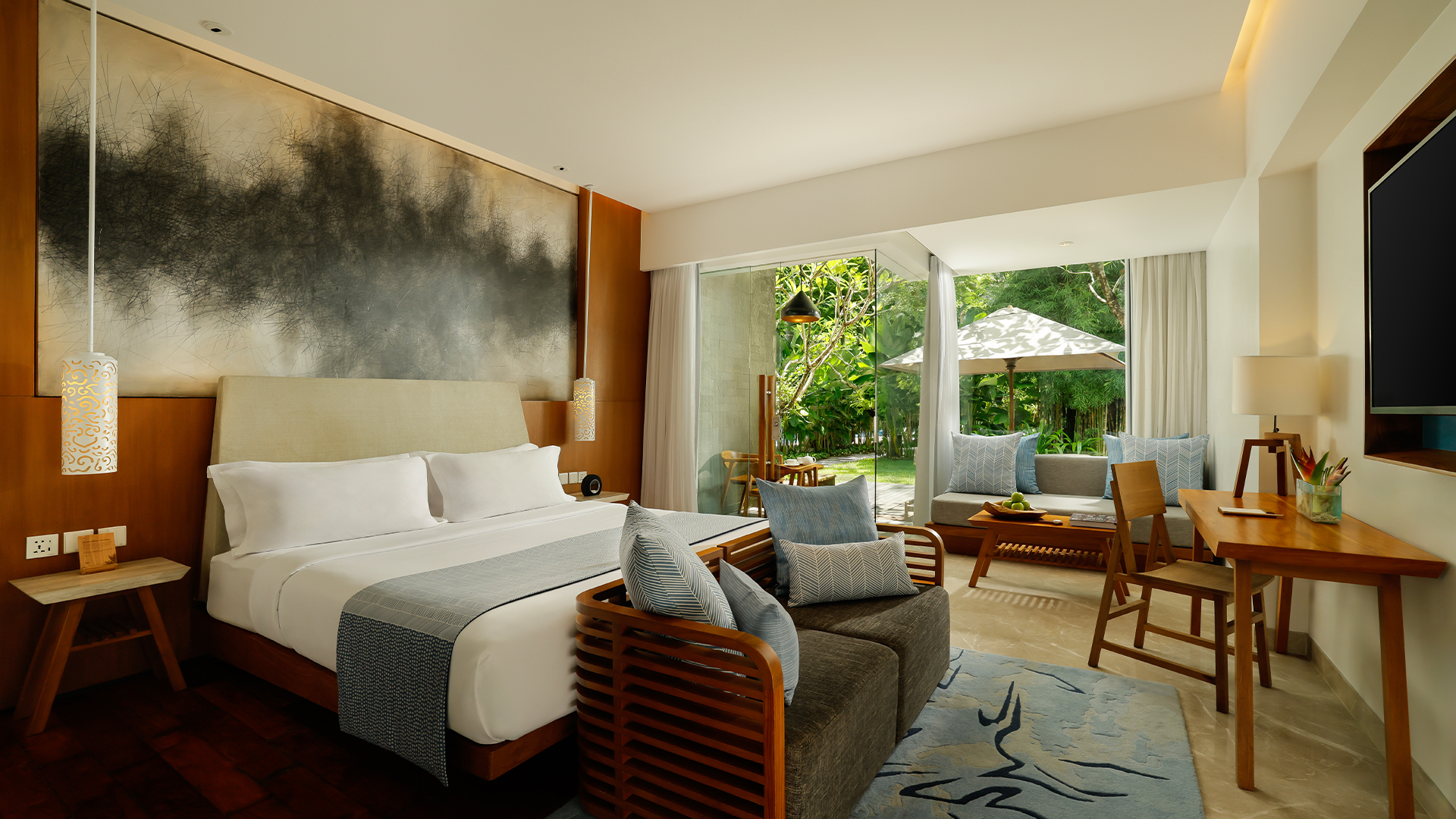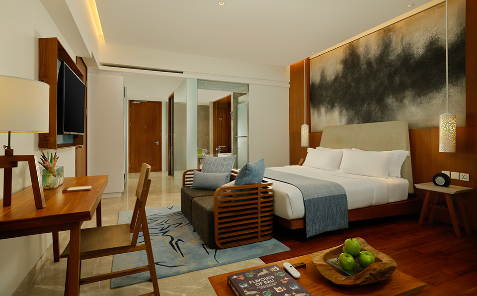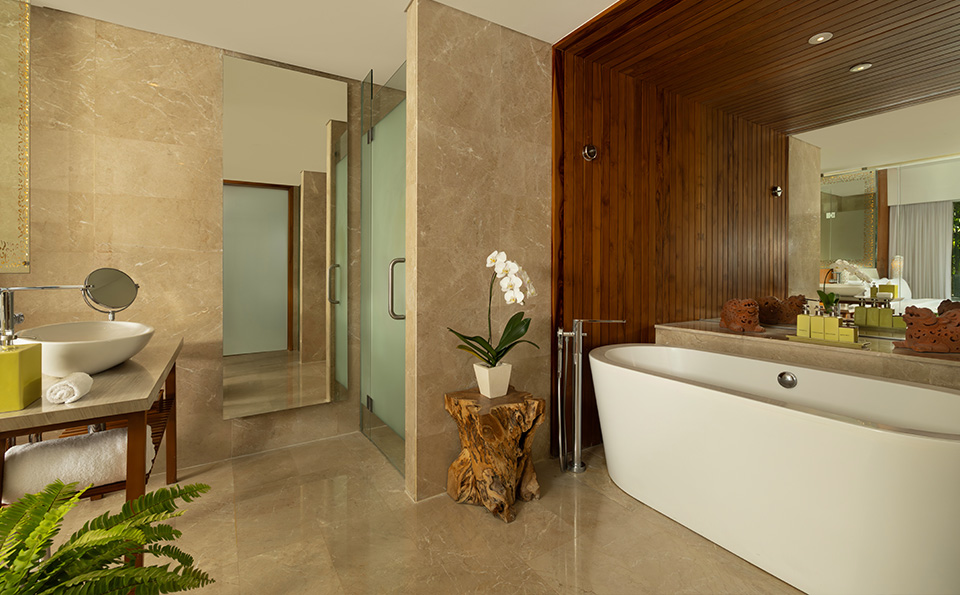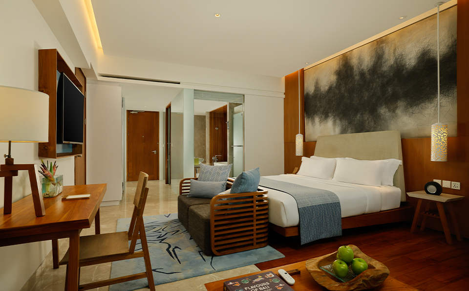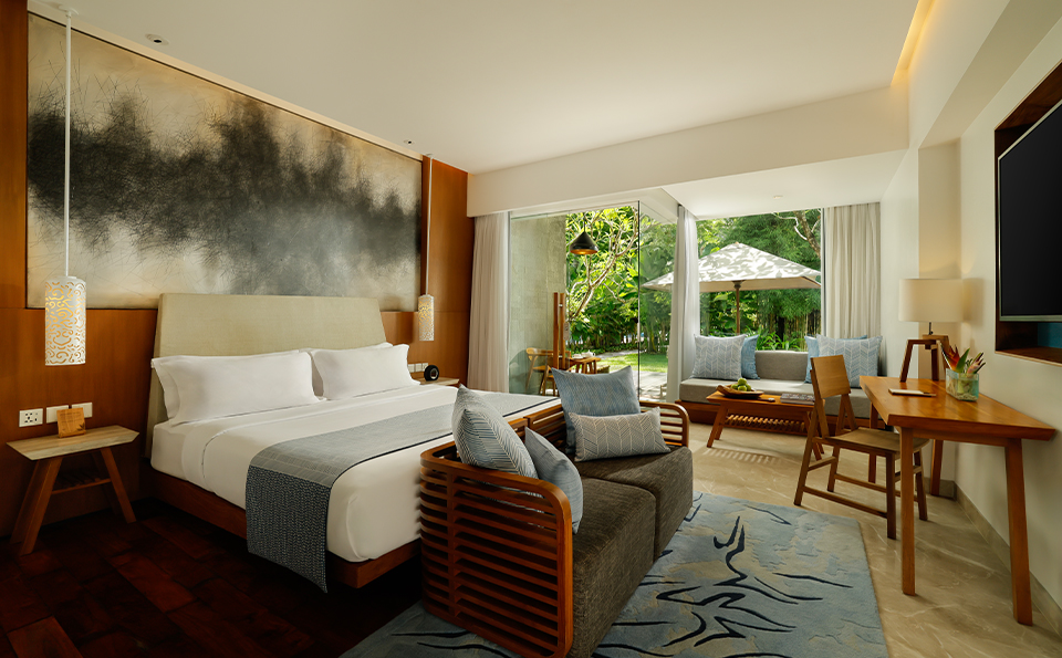While each of these spacious rooms offer serene views of manicured gardens, the landscapes are best savoured from the comfort of your private balcony. To customise the space for a family or group stay, choose from either a king-size bed or two doubles, in addition to your room’s daybed. In the mornings, the sun's soft rays bathe your room with a dreamlike glow. A connecting door conceals an equally expansive and brightly-lit second room, giving you the option of spreading out your group for added privacy.