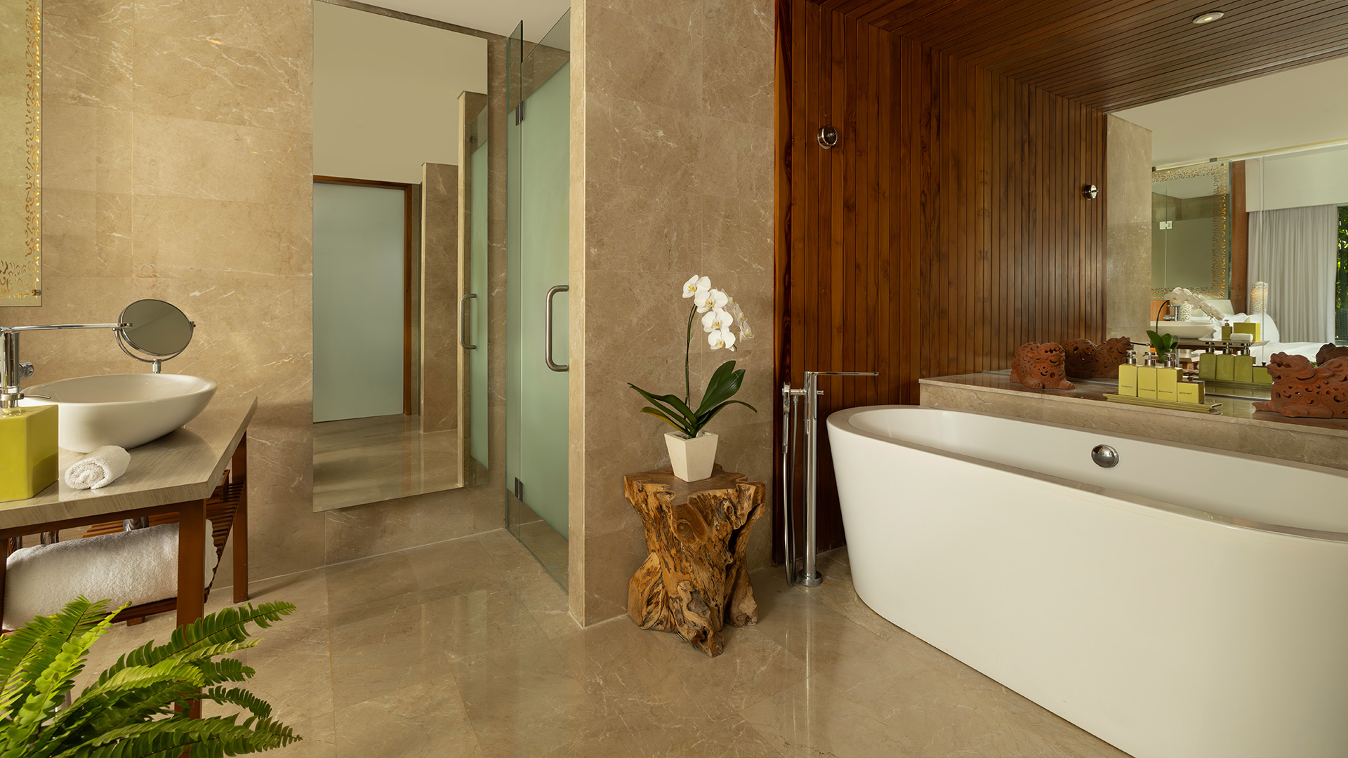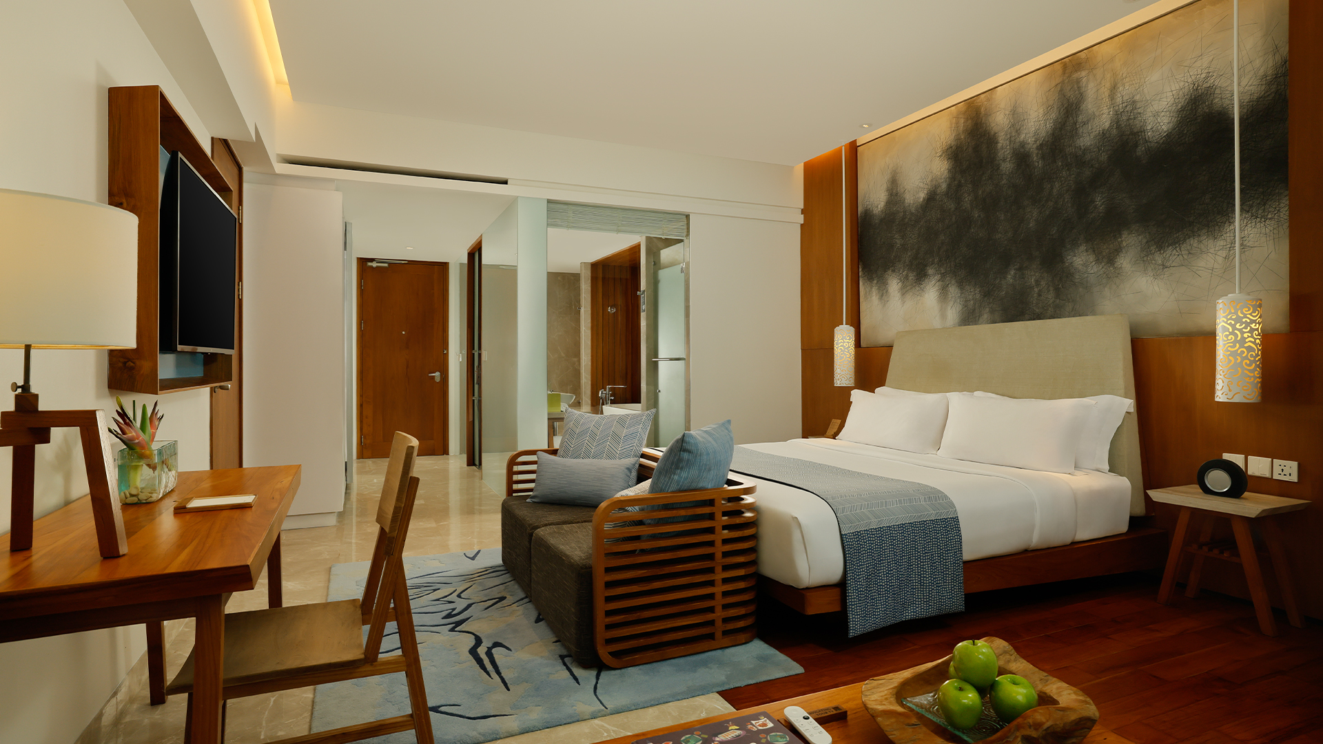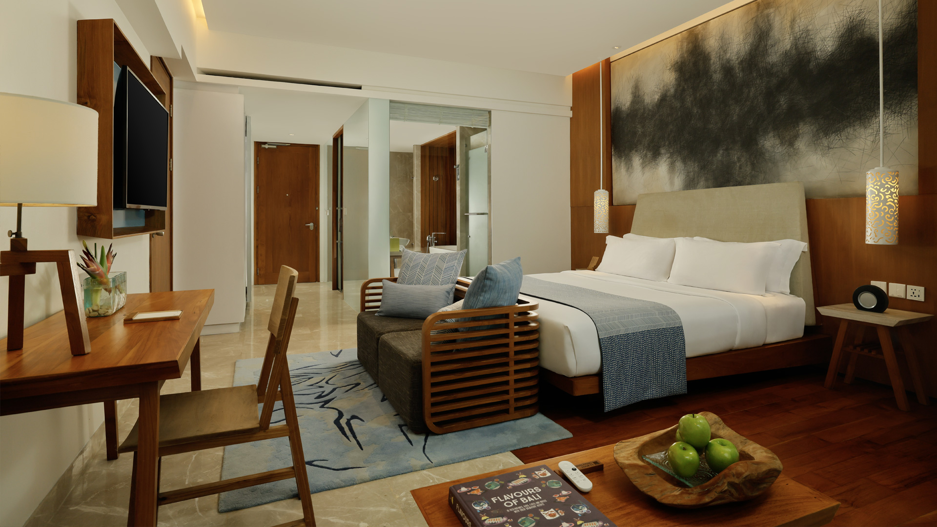 While each of these spacious rooms offer serene views of manicured gardens, the landscapes are best savoured from the comfort of your private balcony. To customise the space for a family or group stay, choose from either a king-size bed or two doubles, in addition to your room’s daybed. In the mornings, the sun's soft rays bathe your room with a dreamlike glow. A connecting door conceals an equally expansive and brightly-lit second room, giving you the option of spreading out your group for added privacy.