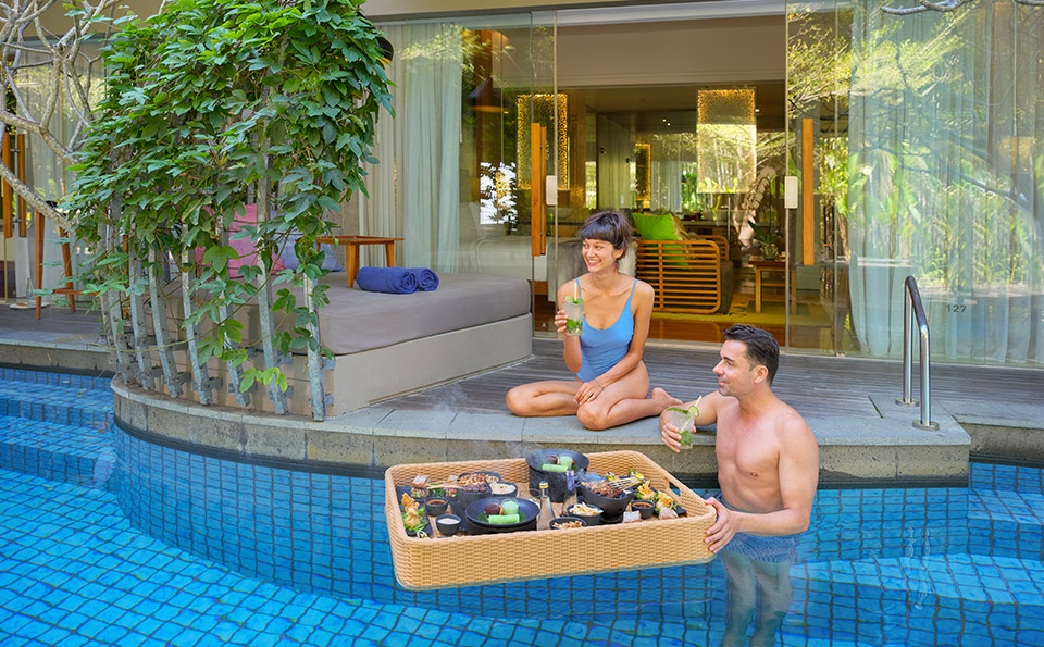 Set exclusively for a relaxed and private floating dining experience, our resident guests can enjoy the Lagoon Brunch or Asian Dreams menu selection. Elevate your floating journey experience with an added touch of refinement by treating yourself to our Grandeur Indulgence menu, available at IDR 1,100,000++ for 2 guests, featuring 2 glasses of Prosecco Sparkling Wine.