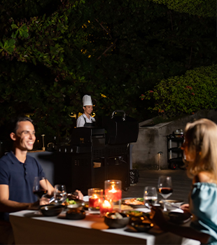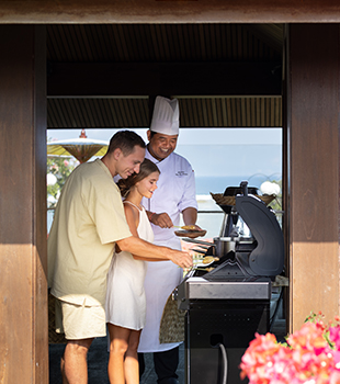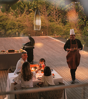 High above the waves lapping the nearby shoreline, enjoy the magic of a candlelight dinner served under the stars in the privacy of our rooftop garden. The mood is set for an evening of romance as a personal butler serves an exclusive sampling menu featuring selection of culinary delights for the most discerning palates.