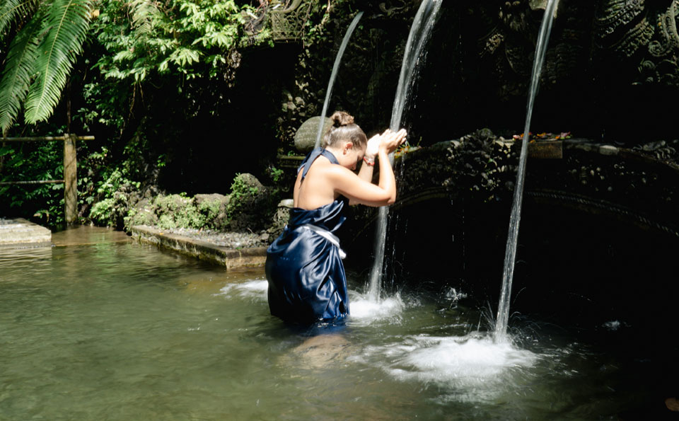 Experience the sacred Melukat ritual at Pura Beji Sapat in Tegallalang - Gianyar, a traditional Balinese water purification ceremony set amidst serene natural springs to cleanse the body, mind, and spirit.