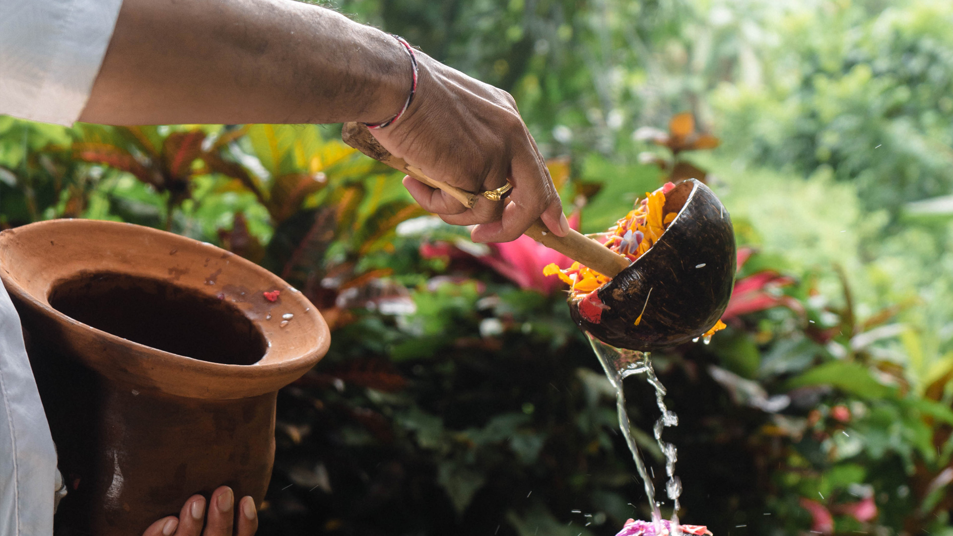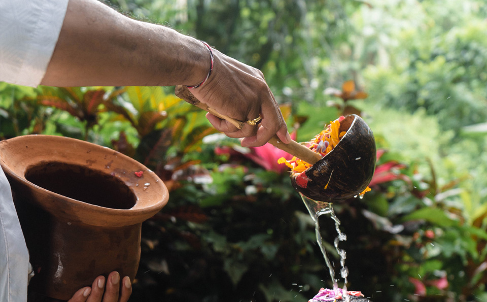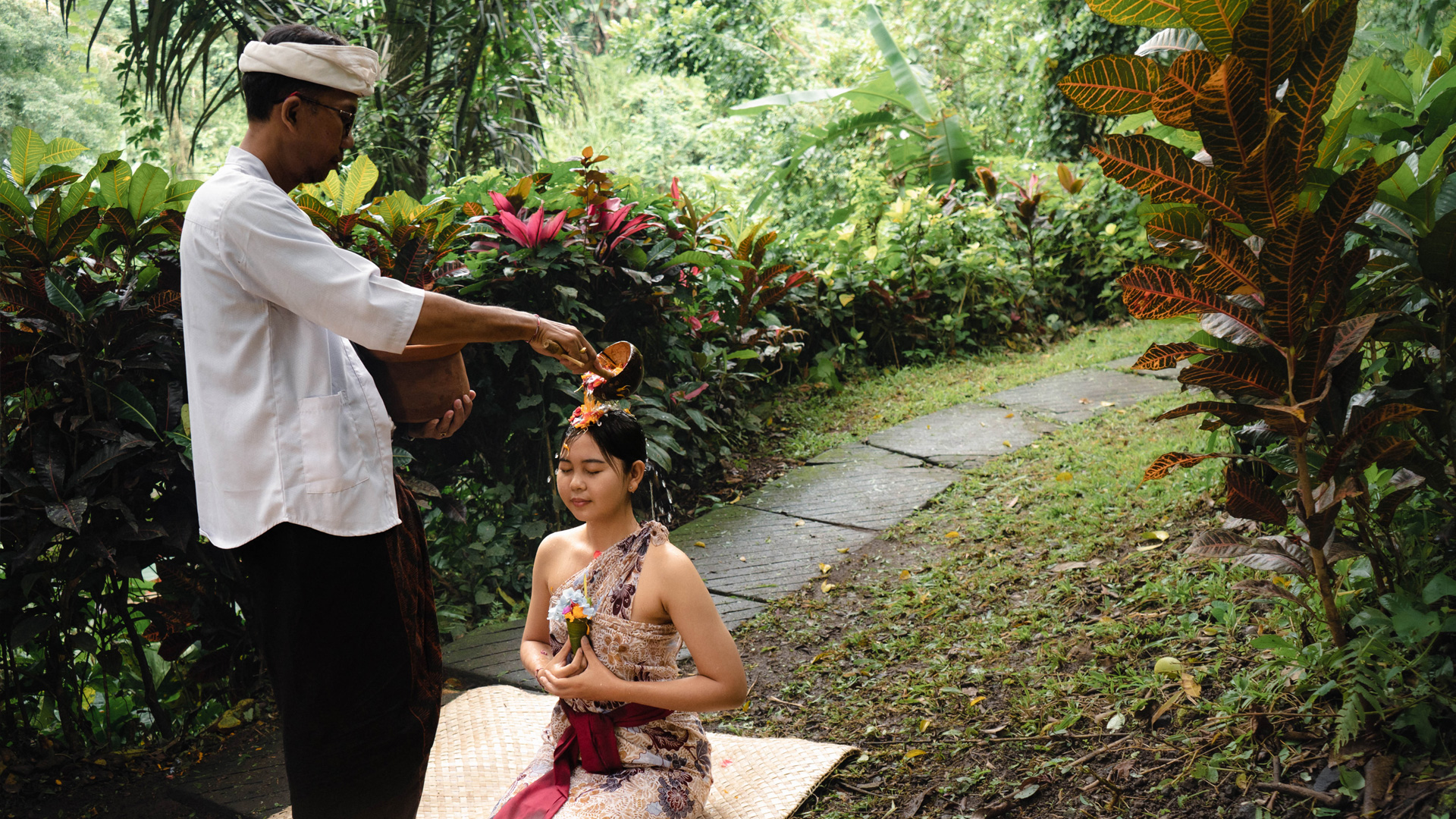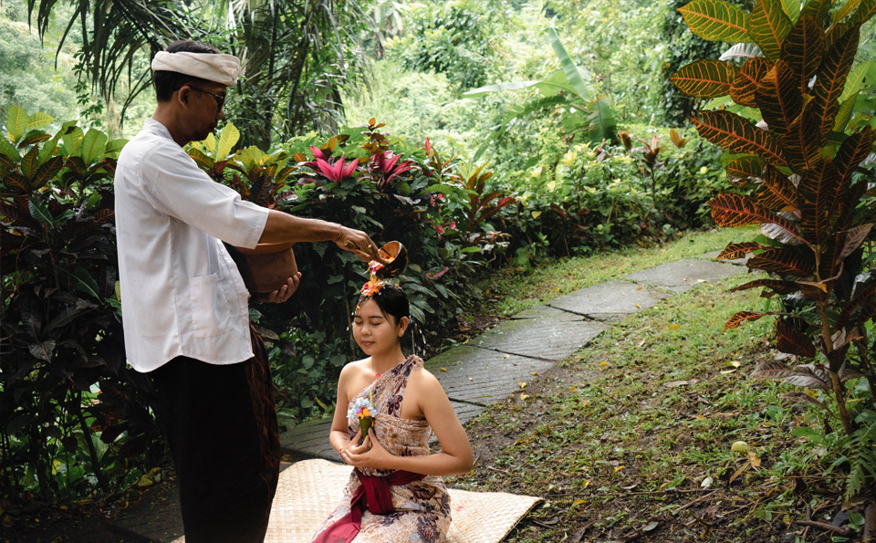 Experience soulful healing with the best healer at Maya Ubud through a guided purification ritual that blends sacred essences of coconut, flowers, sea, and river water to restore balance and awaken inner harmony.