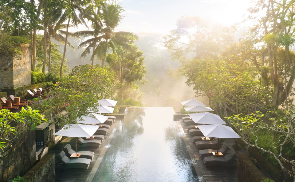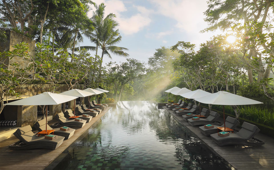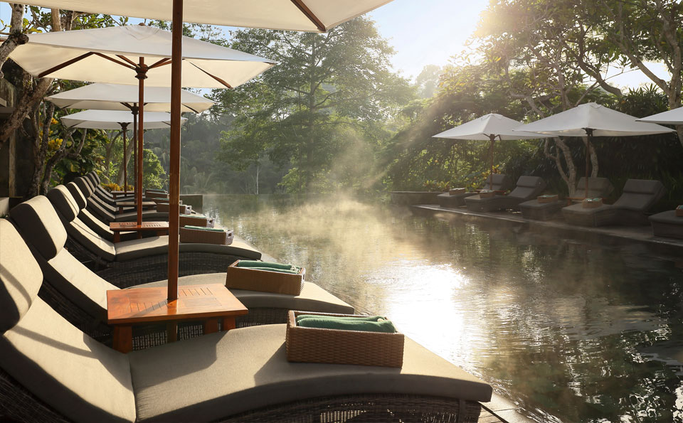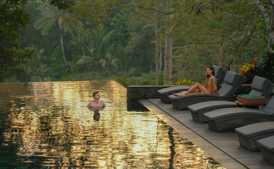 Whether you are enjoying a dip in your private villa pool, or lounging at the swimming pool next to Mayasari restaurant, nothing can truly compare to the breathtaking pool overhanging the river valley.