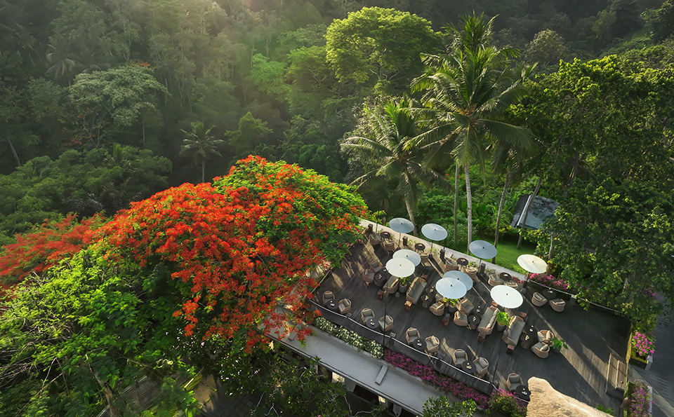 An elegant, open-air pavilion perched above the lush Ubud valley, Tree Bar serves all day dining international dishes highlighting a Mediterranean twist along with a selection of beers, curated cocktails and wine by the glass. Spend your afternoon at the breezy Tree Bar Terrace and relax while enjoying the Resort's scenery in full tranquility. Ensure to savor the a la carte breakfast for an ideal beginning to your day.